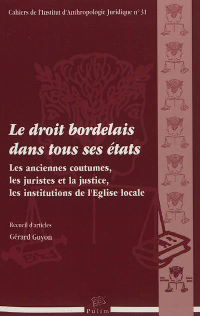 Le droit bordelais connaît une originalité du fait de sa situation géographique qui le place à la frontière des droits coutumiers et savants. Très tôt dans le Moyen Âge, les manuscrits montrent comment les coutumes pénales, en particulier, se sont imprégnées profondément de droit romain et de la pensée des grands juristes de la Rome impériale. Les avocats y trouvent progressivement leur place et les arrêts des juges, formés au jus scriptum, finissent par construire un droit nouveau et à donner une physionomie propre aux coutumes locales. Dans le même temps, les uns et les autres tissent les premiers liens entre le Palais et l'Université. Le long règne des arrêtistes et des magistrats locaux commence : parmi lesquels Nicolas Bohier (Boerius) et ses successeurs les plus illustres comme Arnaud Ferron, Jean d'Arrerac, Bernard Automne, Abraham Lapeyrère. Principaux acteurs bordelais de la conférence des deux droits romain et coutumier, ils sont aussi, avec les juges, les créateurs d'une jurisprudence marquée du sceau d'une spécificité certaine : faite de prudence et de mesure, appliquée à la recherche d'une pratique savante du droit et d'une méthode juridique qui seront encore louées au XIXe siècle. Avec eux, une mémoire judiciaire prend corps instituant peu à peu une autorité jurisprudentielle. Dans leur sphère, le droit et les institutions de l'Église permettent de relever, dans l'histoire des grands ordres bénédictins et mauristes bordelais, le rôle de la médiation et du compromis que Montaigne soulignait déjà en son temps, et que Montesquieu plaçait au coeur de l'esprit juridique des habitants de la cité. Les périodes les plus délicates lors des affrontements concordataires et de la Séparation des Églises et de l'État en témoignent.