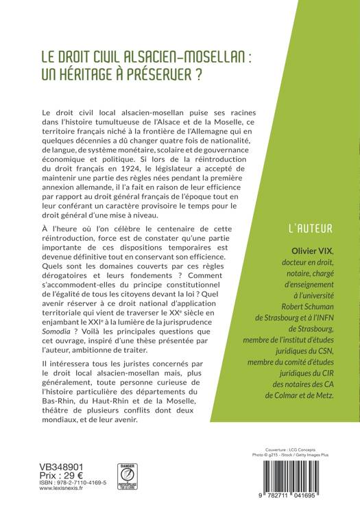 Ouvrage consacré au « Droit local civil alsacien mosellan : un héritage juridique à préserver ? » qui s'inscrIt dans le cadre de la célébration du 100e anniversaire de l'introduction du droit local.