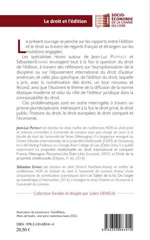 Le présent ouvrage se penche sur les rapports entre l'édition et le droit au travers de regards français et étrangers sur les mutations engagées. Les spécialistes envisagent tout à la fois la question du droit de l'édition, et celle, plus spécifique, de l'édition du droit qui a pris un tour nouveau avec la numérisation des écrits. Ces problématiques sont interrogées à travers un prisme pluridisciplinaire, intéressant à la fois le droit privé, le droit public, l'histoire du droit, le droit européen, le droit comparé et l'économie.