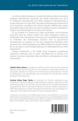 Ce volume collectif marque un moment de référence dans la recherche juridique internationale, réunissant des études présentées lors de la 4e Conférence internationale sur le droit comparé et international qui a eu lieu à Bucarest le 14 juin 2024. L'ouvrage se distingue par la pertinence et la nouveauté scientifique des thèmes abordés, reflétant des enjeux d'actualité majeurs tels que la sécurité mondiale, la justice climatique et l'impact de la technologie sur les droits de l'homme. Ce qui confère à ce volume une valeur particulière, c'est la manière innovante dont les auteurs traitent des sujets émergents comme la militarisation des changements climatiques, la criminalité transnationale et l'utilisation des technologies avancées dans la gouvernance internationale. Les analyses ne sont pas uniquement théoriques, elles proposent des solutions pratiques aux défis juridiques de demain, faisant de cet ouvrage un outil indispensable pour le développement du droit international.