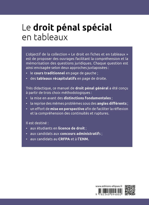 Très didactique, ce manuel de droit pénal spécial a été conçu à partir de trois choix méthodologiques :
