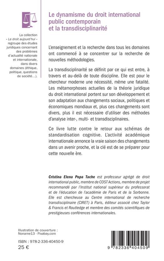 L’enseignement et la recherche dans tous les domaines ont commencé à se concentrer sur la recherche de nouvelles méthodologies. La transdisciplinarité se définit par ce qui est entre, à travers et au-delà de toute discipline. Elle est pour le chercheur moderne une nécessité, même une fatalité. Les métamorphoses actuelles de la théorie juridique du droit international portent sur son développement et son adaptation aux changements sociaux, politiques et économiques mondiaux et, plus ces changements sont divers, plus il est nécessaire d’utiliser des méthodes d’analyse inter-, multi- et transdisciplinaires. Ce livre lutte contre le retour aux schémas de standardisation cognitive. L’activité académique internationale annonce la vraie saison des changements dans un avenir proche, et la clé est de se préparer pour cette nouvelle ère.