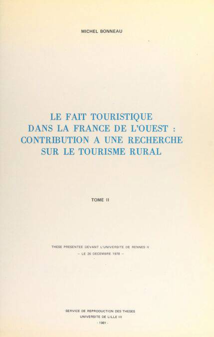 Le fait touristique dans la France de l'Ouest : contribution à une recherche sur le tourisme rural (2) E-BOOK