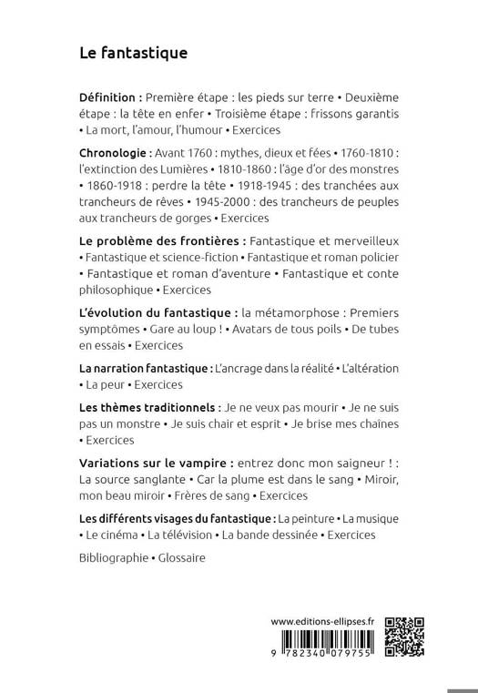 Cet ouvrage aborde le fantastique grâce à des extraits de textes, des explications et des sujets de réflexion de façon thématique : définition, chronologie, problème des frontières, évolution, etc.