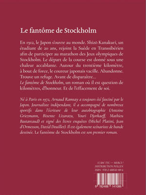 L’évaporé des Jeux Olympiques... En 1912, le Japon s’ouvre au monde et ShizÅ Kanakuri, étudiant de 20 ans, rejoint la Suède en Transsibérien afin de participer aux Jeux de Stockholm. Le départ du marathon est donné sous une chaleur accablante, qui provoque la mort d’un coureur. Autour du trentième kilomètre, à bout de forces, ShizÅ vacille. Une maison apparaît comme une oasis. Une famille lui offre de l’eau, un lit. Il ne se réveille que le lendemain. De honte, il s’enfuit. Avant de disparaître... Le Fantôme de Stockholm est un roman où il y est question de kilomètres, d'honneur et de l'effacement de soi.