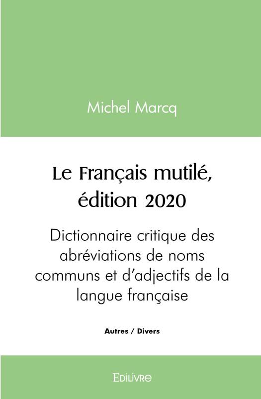 Ce petit livre est un dictionnaire des abréviations et apocopes de noms communs et d'adjectifs de la langue française, des plus courantes, comme par exemple actu, édito, info, sympa, aux moins répandues comme athlé, choré, etc. L'auteur commente, à côté de la signification ou de la définition de l'abréviation, de façon parfois critique ou ironique l'utilisation, souvent abusive de ces mots amputés de notre si belle langue. Il donne aussi des exemples actuels d'abréviations relevées récemment dans la presse écrite ou entendues dans les médias audiovisuels. Ce petit dictionnaire peut aider ceux qui, parce que installés depuis peu en France ou dans un pays francophone, ne sont pas encore familiarisés avec toutes les " finesses " et variantes de cette langue.