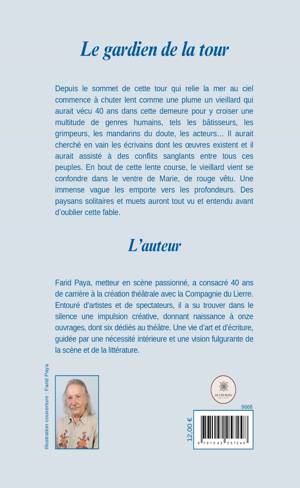 Depuis le sommet de cette tour qui relie la mer au ciel commence à chuter lent comme une plume un vieillard qui aurait vécu 40 ans dans cette demeure pour y croiser une multitude de genres humains, tels les bâtisseurs, les grimpeurs, les mandarins du doute, les acteurs... Il aurait cherché en vain les écrivains dont les oeuvres existent et il aurait assisté à des conflits sanglants entre tous ces peuples. En bout de cette lente course, le vieillard vient se confondre dans le ventre de Marie, de rouge vêtu. Une immense vague les emporte vers les profondeurs. Des paysans solitaires et muets auront tout vu et entendu avant d'oublier cette fable.