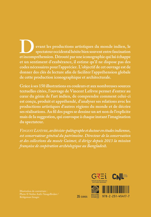 Devant les productions artistiques du monde indien, le spectateur occidental hesite bien souvent entre fascination et incomprehension. Deroute par une iconographie qui lui echappe et un sentiment d'exuberance, il estime qu'il ne dispose pas des codes necessaires pour l'apprecier. L'objectif de cet ouvrage est de donner des cles de lecture afin de faciliter l'apprehension globale de cette production iconographique et architecturale. Grace a ses 150 illustrations en couleurs et aux nombreuses sources textuelles citees, l'ouvrage de Vincent Lefevre permet d'entrer au coeur du genie de l'art indien, de comprendre comment celui-ci est concu, produit et apprehende, d'analyser ses relations avec les productions artistiques d'autres regions du monde et de decrire ses realisations. Au fil des pages se dessine un art non de l'explicite mais de la suggestion, qui convoque a chaque instant l'imagination du spectateur.