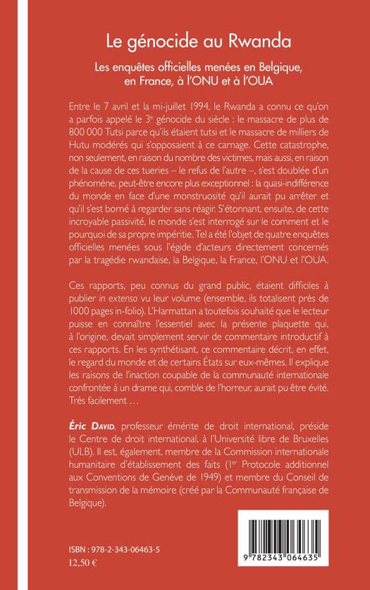 Cet ouvrage explique les raisons de l'inaction coupable de la communauté internationale lors du génocide rwandais de 1994. Quasi-indifférente face à une monstruosité qu'elle aurait pu arrêter et qu'elle s'est bornée à regarder sans réagir, elle s'est ensuite interrogée sur le comment et le pourquoi de sa propre passivité. Tel a été l'objet de quatre enquêtes officielles menées sous l'égide de la Belgique, de la France, de l'ONU et de l'OUA, synthétisées dans cet ouvrage.