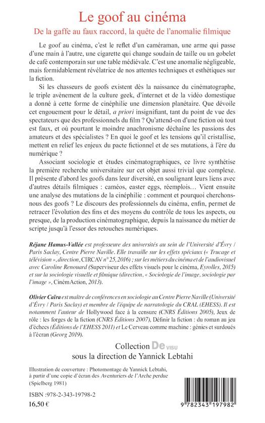 Le goof au cinéma, c'est le reflet d'un caméraman, une arme qui passe d'une main à l'autre, une cigarette qui change soudain de taille ou un gobelet de café contemporain sur une table médiévale. C'est une anomalie négligeable, mais formidablement révélatrice de nos attentes techniques et esthétiques sur la fiction. Si les chasseurs de goofs existent dès la naissance du cinématographe, le triple avènement de la culture geek, d'internet et de la vidéo domestique a donné à cette forme de cinéphilie une dimension planétaire. Que dévoile cet engouement pour le détail, a priori insignifiant, tant du point de vue des spectateurs que des professionnels du film ? Qu'attend-on d'une fiction où tout est faux, et où pourtant le moindre anachronisme déchaîne les passions des amateurs et des spécialistes ? En quoi le goof et les tensions qu'il cristallise, mettent en relief les enjeux du pacte fictionnel et de ses mutations, à l'ère du numérique ?