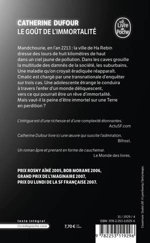 Mandchourie, en l’an 2213 : la ville de Ha Rebin dresse des tours de huit kilomètres de haut dans un ciel jaune de pollution. Dans les caves grouille la multitude des damnés de la société, les suburbains. Une maladie qu’on croyait éradiquée réapparaît. Cmatic est chargé par une transnationale d’enquêter sur trois cas. Une adolescente étrange le conduira à travers l’enfer d’un monde déliquescent, vers ce qui pourrait être un rêve d’immortalité. Mais vaut-il la peine d’être immortel sur une Terre en perdition ?