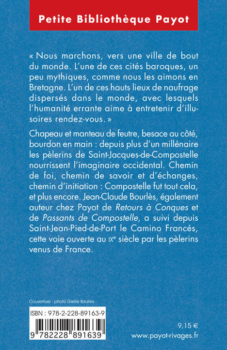 Chapeau et manteau de feutre, besace au côté, bourdon en main : depuis plus d'un millénaire les pèlerins de Saint-Jacques-de-Compostelle nourrissent l'imaginaire occidental. Chemin de foi, chemin de savoir et d'échanges, chemin d'initiation : Compostelle fut tout cela, et plus encore. Jean-Claude Bourlès a suivi depuis Saint-Jean-Pied-de-Port le Camino Francés, cette voie ouverte au IXe siècle par les pélerins venus de France.