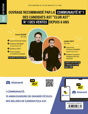 Ouvrage N°1 des VENTES en 2023, en 2022, en 2021 et en 2020, cet ouvrage de référence écrit par Joachim PINTO (HEC Paris et score record de 507/600) et Arnaud SÉVIGNÉ (HEC Paris) vous propose une préparation complète au TAGE MAGE (de A à Z).
