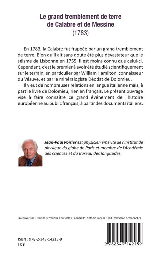 En 1783, la Calabre fut frappée par un grand tremblement de terre. Bien qu'il ait sans doute été plus dévastateur que le séisme de Lisbonne en 1755, il est moins connu que celui-ci. Cependant, c'est le premier à avoir été étudié scientifiquement sur le terrain, en particulier par William Hamilton, connaisseur du Vésuve, et par le minéralogiste Déodat de Dolomieu. Le présent ouvrage vise à faire connaître ce grand événement de l'histoire européenne au public français, à partir des documents italiens.