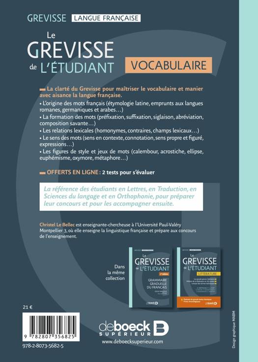 La clarté du Grevisse pour maîtriser le vocabulaire et manier avec aisance la langue française. L’origine des mots français (étymologie latine, emprunts aux langues romanes, germaniques et arabes…)
