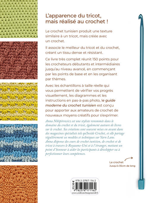 Ce livre complet sur le crochet tunisien s'adresse aux crocheteurs de tous niveaux, des débutants aux intermédiaires et avancés. Vous y trouverez 150 points de crochet tunisien, organisés par thèmes, en commençant par les points de base en crochet tunisien.