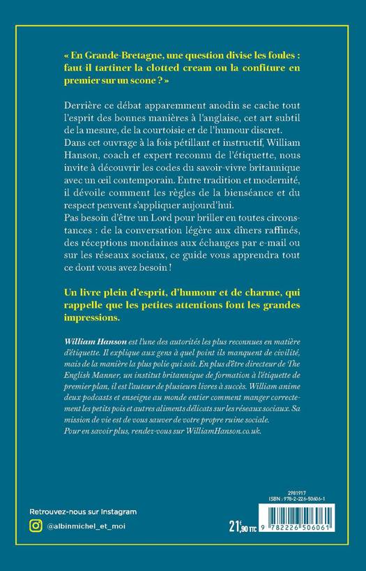 Dans cet ouvrage à la fois pétillant et instructif, William Hanson, coach et expert reconnu de l'étiquette, nous invite à découvrir les codes du savoir-vivre britannique avec un oeil contemporain. Entre tradition et modernité, il dévoile comment les règles de la bienséance et du respect peuvent s'appliquer aujourd'hui.