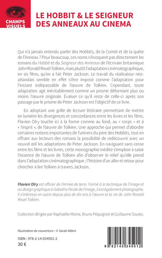 Qui n'a jamais entendu parler des Hobbits, de la Comté et de la quête de l'Anneau ? Pour beaucoup, ces noms n'évoquent pas directement les romans du Hobbit et du Seigneur des Anneaux de l'écrivain britannique John Ronald Reuel Tolkien, mais plutôt l'adaptation cinématographique, en six films, qu'en a fait Peter Jackson. Le travail du réalisateur néo-zélandais semble en effet s'être imposé comme l'adaptation pour l'instant indépassable de l'oeuvre de Tolkien. Cependant, toute adaptation agit inévitablement comme un prisme déformant plus ou moins l'oeuvre originale. Évaluer ce qu'il reste de celle-ci après son passage par le prisme de Peter Jackson est l'objectif de ce livre. En adoptant une grille de lecture littéraire permettant de mettre en lumière les divergences et concordances entre les livres et les films, Flavien Olry touche ici à la forme comme au fond, au corps et à l'esprit, de l'oeuvre de Tolkien. Une approche qui permet d'aborder certaines notions importantes de l'univers du père des Hobbits, tout en offrant aux lecteurs des romans la possibilité de redécouvrir avec un nouvel oeil les adaptations de Peter Jackson. En naviguant sans cesse entre les films et les livres, cette monographie inédite s'emploie à saisir l'essence de l'oeuvre de Tolkien afin d'observer le relief qu'elle prend dans l'adaptation cinématographique; l'histoire d'un aller et retour pour chercher à lire Tolkien à travers Jackson.