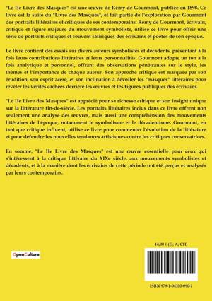 Un masque peut-il révéler plus qu'il ne cache? Dans « Le IIe Livre des Masques », Remy De Gourmont nous entraîne dans un voyage littéraire à travers les portraits de figures marquantes de la fin du XIXe siècle. Ce recueil, à la fois critique et poétique, dresse le tableau d'une époque en pleine effervescence artistique et intellectuelle. À travers une série de portraits incisifs, l'auteur explore les personnalités de ses contemporains, des écrivains aux artistes, en passant par les penseurs qui ont façonné le paysage culturel de leur temps. Le cadre de cette oeuvre est la France de la Belle Époque, une période de bouleversements et de renouveau, où les idées foisonnent et les conventions sont remises en question. De Gourmont, avec son style inimitable, nous offre une analyse fine des évolutions et des contradictions de ces figures changeantes. Chaque portrait est une fenêtre ouverte sur les aspirations et les doutes de ces hommes et femmes qui ont marqué leur époque. Les thématiques abordées dans ce livre sont variées: la quête de l'identité, la tension entre tradition et modernité, et la complexité des relations humaines. En dressant ces portraits, De Gourmont ne se contente pas de décrire, il interroge et provoque la réflexion. Son regard acéré et parfois ironique nous invite à reconsidérer notre propre perception des figures historiques et littéraires. En parcourant ces pages, le lecteur est invité à un voyage introspectif, à la découverte de l'âme humaine dans toute sa transformation. Ce livre nous enseigne à voir au-delà des apparences, à comprendre les motivations changeantes qui animent les individus. Par son évolution stylistique, De Gourmont nous offre une perspective nouvelle sur l'art de la critique littéraire et sur le changement des interactions humaines.