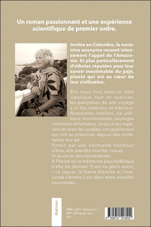 Invitée en Colombie, la narratrice anonyme ressent intensément l’appel de l’Amazonie. Et plus particulièrement d’ethnies réputées pour leur savoir inestimable du âgé, plante qui est au cœur de leur civilisation. Elle nous livre dans un style classique, tout en nuances, les péripéties de son voyage à la fois extérieur et intérieur. Rencontres insolites, vie politique mouvementée, paysages contrastées et fabuleux. Jusqu’à ses expériences avec les curakas, ces guérisseurs qui ont su préserver depuis des millénaires leur art. Portée par une étonnante fraîcheur d’âme, elle prendra tous les risques, et sa vie en sera bouleversée. A l’heure où la médecine psychédélique (celle de demain ?) est en plein essor, cet ouvrage tombe à pic dans notre actualité tourmentée.