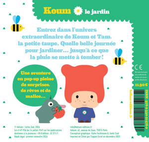 À travers une série de mini doubles-pages animées, plongez dans le jardin coloré et à croquer de Koum. Émerveillement visuel garanti ! Un pop-up miniature, un nouvel univers et des personnages irrésistibles (Koum et Tam), par la facétieuse Janik Coat et son acolyte Bernard Duisit.