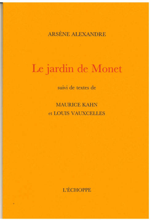 Cet ouvrage réunit trois textes écrits au tournant du XXe siècle (et jamais réédités dans leur entièreté), décrivent l’état du « domaine » de Monet à Giverny, notamment du fameux jardin, que l’artiste a commencé à profondément remodeler depuis qu’il en est devenu propriétaire quelques années auparavant. Arsène Alexandre, critique d’art réputé, aujourd’hui assez oublié, a le mérite de souligner que le jardin est en train de devenir une œuvre de Monet et qu’il est un des meilleurs outils pour comprendre l’esprit du peintre.