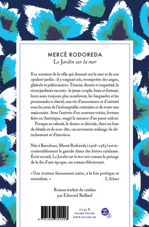 Mercè Rodoreda (1908-1983) est née à Barcelone. Ses idées républicaines et son engagement la contraignent à un long exil de Paris à Genève entre 1939 et 1975. Avec La Place du diamant et Rue des Camélias (Prix Sant Jordi), elle s’impose comme la grande dame des lettres catalanes. Le Jardin sur la mer est traduit pour la première fois en français.