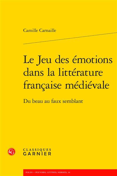 Dans la société du spectacle qu'est celle du Moyen Âge, l'émotion se veut révélatrice - son apparence surtout. Comprise à la croisée d'exigences morales fortes, elle oscille entre impératifs de contrôle et de sincérité, selon toute une palette de manipulations à l'appréciation variable dans les oeuvres narratives. Le jeu des émotions se conçoit ainsi au coeur d'une dialectique complexe entre éloge, voire recommandation formelle, et blâme explicite des pratiques trompeuses qu'il peut induire, non sans nuances et inversions au gré de son histoire dans la littérature française médiévale. Mettre en lumière les enjeux variés de ce jeu permet de souligner toute la richesse de la codification et de la mise en scène émotionnelle au Moyen Âge.