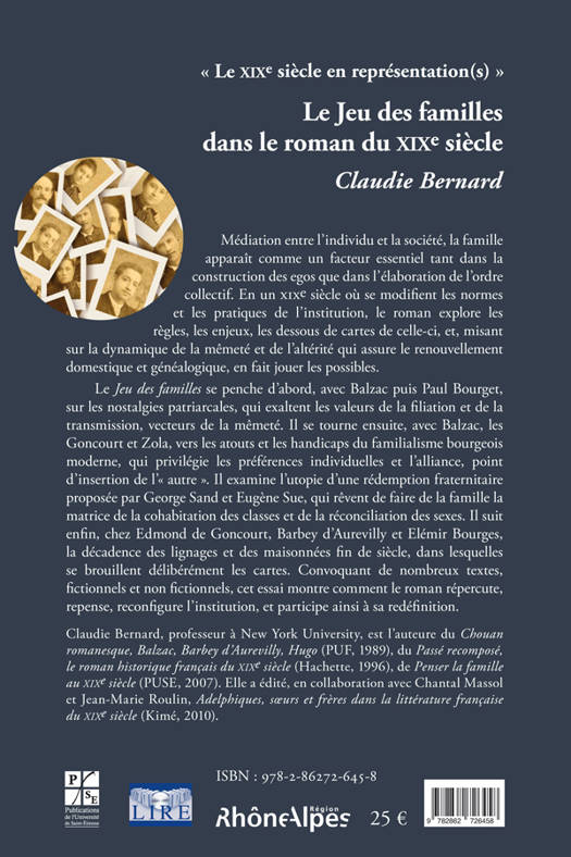 Médiation entre l'individu et la société, la famille apparaît comme un facteur essentiel tant dans la construction des egos que dans l'élaboration de l'ordre collectif. En un XIXe siècle où se modifient les normes et les pratiques de l'institution, le roman explore les règles, les enjeux, les dessous de cartes de celle-ci, et, misant sur la dynamique de la mêmeté et de l'altérité qui assure le renouvellement domestique et généalogique, en fait jouer les possibles.
