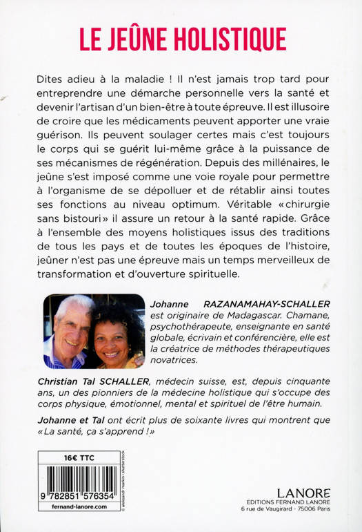 Il n'est jamais trop tard pour entreprendre une démarche personnelle vers la santé et devenir l'artisan d'un bien-être à toute épreuve. Il est illusoire de croire que les médicaments peuvent apporter une vraie guérison. Ils peuvent soulager momentanément mais c'est toujours le corps qui se guérit lui-même grâce à la puissance de ses mécanismes de régénération. Depuis des millénaires, le jeûne s'est imposé comme une voie royale pour permettre à l'organisme de se dépolluer et de rétablir ainsi toutes ses fonctions au niveau optimum. Véritable « chirurgie sans bistouri » il assure un retour à la santé rapide. Grâce à l'ensemble des moyens holistiques issus des traditions de tous les pays et de toutes les époques de l'histoire, jeûner n'est pas une épreuve mais un temps merveilleux de transformation et de régénération. Découvrez votre potentiel d'auto-guérison et faites confiance à la sagesse de votre « médecin intérieur » ! Il vous mènera vers le bien-être et la santé totale avec une facilité qui vous stupéfiera !