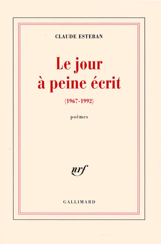 "Qui songerait, même au soir de la plus vive attente, à reconnaître dans ses mots un sillage de ce qui fut ? À peine écrit, le jour appelle un autre jour et nous distance. Sur les pouvoirs de la parole, trop de soupçons, depuis longtemps, ont pesé. Il faut vivre avec eux. Mais le matin est là, l'heure nouvelle est urgente. À tous ces riens de l'air, à ces présences sans profil, il faut un corps qui les accueille, un nom aussi, par-delà tous les signes effacés." Claude Esteban. Le jour à peine écrit ne se présente pas sous la forme d'une anthologie de poèmes épars. Le rassemblement ici proposé cherche à rendre compte, par de longues séquences, d'une trajectoire d'écriture qui se manifeste et se confirme à travers quatre livres majeurs de Claude Esteban, écrits entre 1967 et 1992 : Terres, travaux du coeur, Le Nom et la Demeure, Élégie de la mort violente, Quelqu'un commence à parler dans une chambre. Le dernier recueil de Claude Esteban publié à ce jour, Morceaux de ciel, presque rien (Gallimard), a reçu le prix Goncourt/Poésie en 2001.