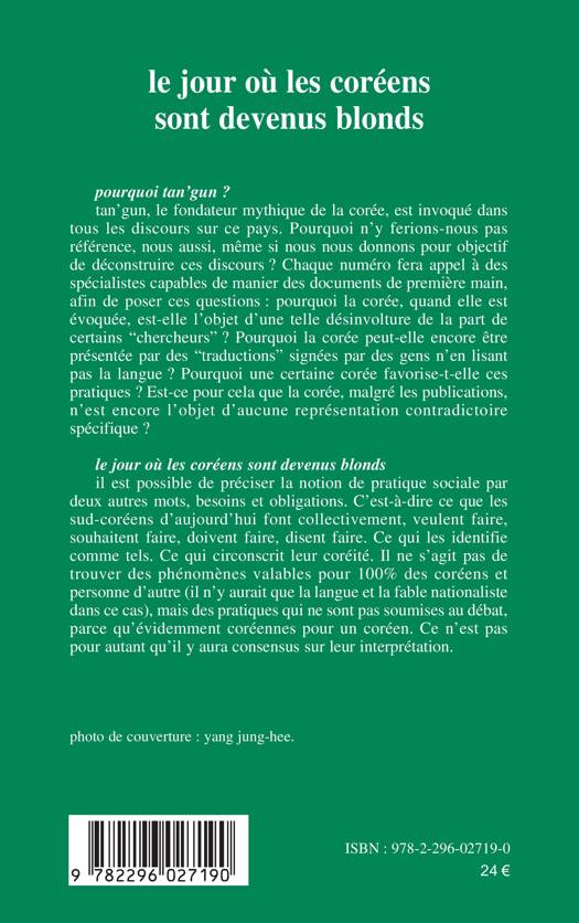 Toujours dans l'optique de la revue tan'gun, de déconstruire les discours officiels sur la Corée, ce numéro (qui ouvre une nouvelle série de numéros après une interruption de 3 ans) tente aujourd'hui de préciser la pratique sociale des coréens, ce qui les identifie comme tels, en analysant des pratiques, telles que l'adultère, les grèves, la montée du travail féminin, le karaoké... et bien sûr le fait de se teindre les cheveux en blond.