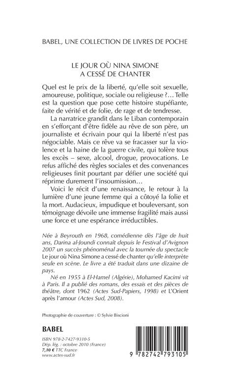 Née en 1968 au Liban d'une mère libanaise chiite et d'un père journaliste et écrivain syrien farouchement laïc, rebelle à toute oppression, Darina al-Joundi raconte la folie de la guerre civile qui a ravagé le Liban durant dix-sept ans et qui lui a donné à vivre ses plus belles amours et ses pires désillusions.