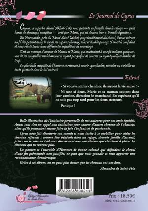 Cyrus, ce superbe cheval akhal-teke, nous présente sa famille d’accueil dans le refuge créé par Marie, qui est devenu son « Paradis équestre ». En Normandie, près du Mont Saint Michel, pays traditionnel du cheval, il nous entraîne, au fil des présentations de ses copains chevaux, ânes et double poneys, dans différentes expéditions de sauvetage. C’est un message d’amour à Nanou et Marie, qui soustraient à une fin indigne quelques-uns de ses congénères malchanceux n’ayant pas gagnés de courses ou ayant quelques années de trop. La plus belle conquête de l’homme se retrouve à courir, gambader, convoler ou à vieillir en toute quiétude dans ce bel endroit.