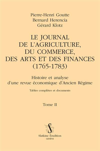 Le Journal de l'agriculture, du commerce, des arts et des finances (1765-1783) : histoire et analyse d'une revue économique d'Ancien Régime : tables complètes et documents. Vol. 2