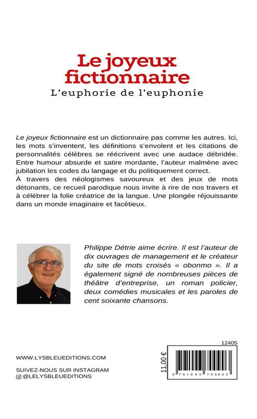 Le joyeux fictionnaire est un dictionnaire pas comme les autres. Ici, les mots s'inventent, les définitions s'envolent et les citations de personnalités célèbres se réécrivent avec une audace débridée. Entre humour absurde et satire mordante, l'auteur malmène avec jubilation les codes du langage et du politiquement correct. À travers des néologismes savoureux et des jeux de mots détonants, ce recueil parodique nous invite à rire de nos travers et à célébrer la folie créatrice de la langue. Une plongée réjouissante dans un monde imaginaire et facétieux.