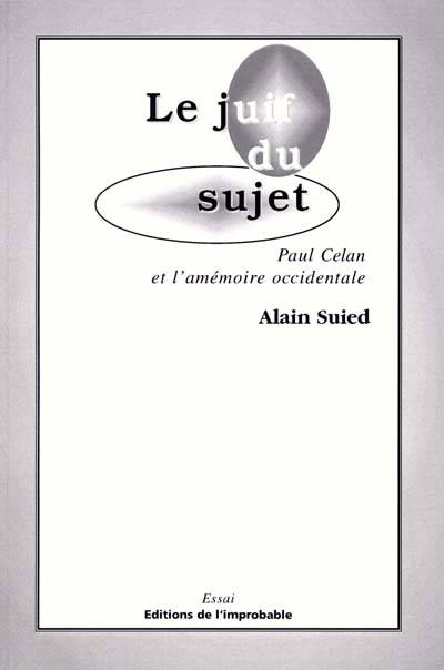 "Le juif du sujet" est un essai sur le mariage impossible de la judéïté et de la germanité, ou l'occidentalité, de Paul Celan, auteur en allemand d'une oeuvre hantée par la mémoire de parents déportés.