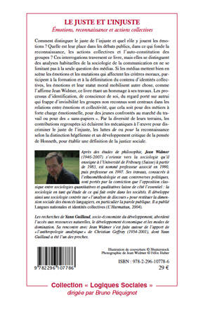 Comment distinguer le juste de l'injuste et quel rôle y jouent les émotions ? Quelle est leur place dans les débats publics, dans ce qui fonde la reconnaissance, les actions collectives et l'auto-constitution des groupes ? Si les médias mettent bien en scène les émotions et les mutations qui affectent les critères moraux, participent à la formation et à la délimitation du contenu d'identités collectives, les émotions et leur statut moral mobilisent autre chose selon Jean Widmer. Cet ouvrage rend hommage à ses travaux.