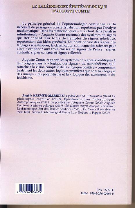 Le principe général de l'épistémologie comtienne est la nécessité du passage du concret à l'abstrait, représenté par l'analyse mathématique. Dans les mathématiques - et surtout dans l'analyse infinitésimale - Comte reconnaît des systèmes de signes qui détiennent leur force de l'emploi de signe généraux représentant des idées générales.