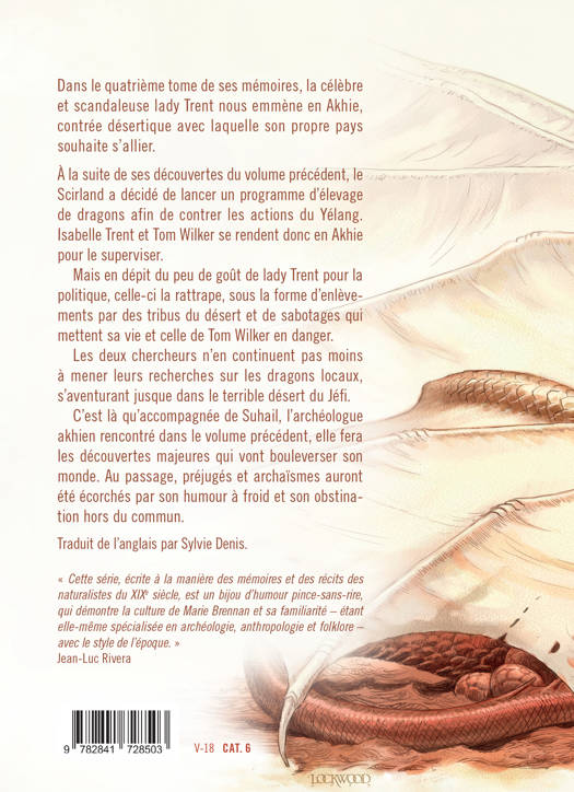Dans le quatrième tome de ses mémoires, la célèbre et scandaleuse lady Trent nous emmène en Akhie, contrée désertique avec laquelle son propre pays souhaite s’allier.