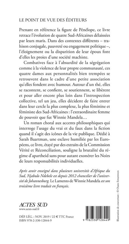 Un roman choral aux accents philosophiques qui interroge l'usage du vrai et du faux dans la fiction quand il s'agit des icônes de la vie publique. Dédié à Sarah Baartman, une esclave humiliée par les Européens, ce livre, étayé par des extraits de la Commission Vérité et Réconciliation, souligne la brutalité du régime d'apartheid sans pour autant exonérer les Noirs de leurs responsabilités individuelles.