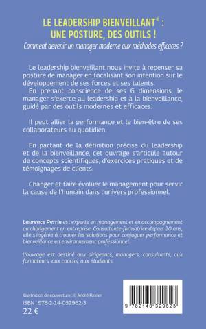 Le leadership bienveillant nous invite à repenser sa posture de manager en focalisant son intention sur le développement de ses forces et ses talents. En prenant conscience de ses 6 dimensions, le manager s'exerce au leadership et à la bienveillance, guidé par des outils modernes et efficaces. Il peut allier la performance et le bien-être de ses collaborateurs au quotidien. En partant de la définition précise du leadership et de la bienveillance, cet ouvrage s'articule autour de concepts scientifiques, d'exercices pratiques et de témoignages de clients. Changer et faire évoluer le management pour servir la cause de l'humain dans l'univers professionnel.