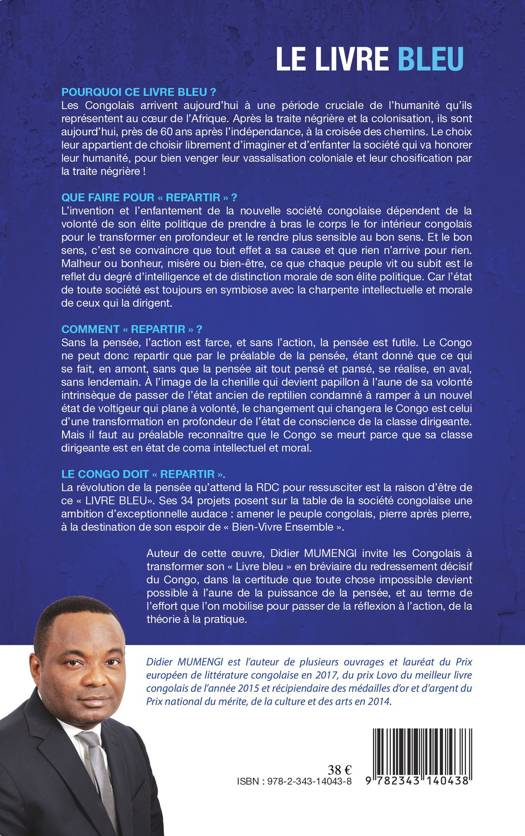 La révolution de la pensée qu'attend la RDC pour ressusciter est la raison d'être de ce « LIVRE BLEU». Ses 34 projets posent sur la table de la société congolaise cette ambition : amener le peuple congolais, pierre après pierre, à la destination de son espoir de « Bien-Vivre Ensemble ». Didier MUMENGI invite les Congolais à transformer son « Livre bleu » en bréviaire du redressement décisif du Congo, dans la certitude que toute chose impossible devient possible à l'aune de la puissance de la pensée, et au terme de l'effort que l'on mobilise pour passer de la réflexion à l'action, de la théorie à la pratique.