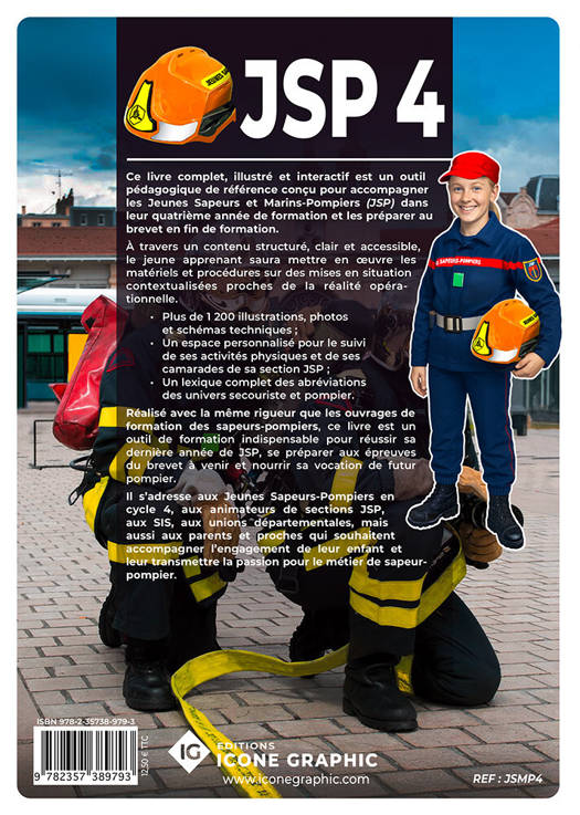 Ce livre complet, illustré et interactif est un outil pédagogique de référence conçu pour accompagner les Jeunes Sapeurs et Marins-Pompiers (JSP) dans leur quatrième année de formation et les préparer au brevet en fin de formation. À travers un contenu structuré, clair et accessible, le jeune apprenant saura mettre en oeuvre les matériels et procédures sur des mises en situation contextualisées proches de la réalité opérationnelle.