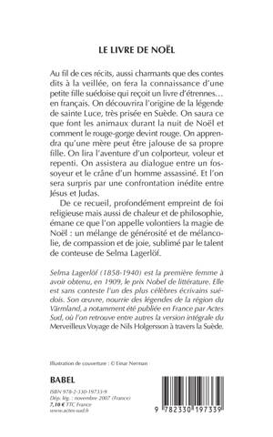 Au fil de ces récits, aussi charmants que des contes dits à la veillée, on fera la connaissance d'une petite fille suédoise qui reçoit un livre d'étrennes... en français. On découvrira l'origine de la légende de sainte Luce, très prisée en Suède. On saura ce que font les animaux durant la nuit de Noël et comment le rouge-gorge devint rouge. On apprendra qu'une mère peut être jalouse de sa propre fille. On lira l'aventure d'un colporteur, voleur et repenti. On assistera au dialogue entre un fossoyeur et le crâne d'un homme assassiné. Et l'on sera surpris par une confrontation inédite entre Jésus et Judas. De ce recueil, profondément empreint de foi religieuse mais aussi de chaleur et de philosophie, émane ce que l'on appelle volontiers la magie de Noël : un mélange de générosité et de mélancolie, de compassion et de joie, sublimé par le talent de conteuse de Selma Lagerlöf.