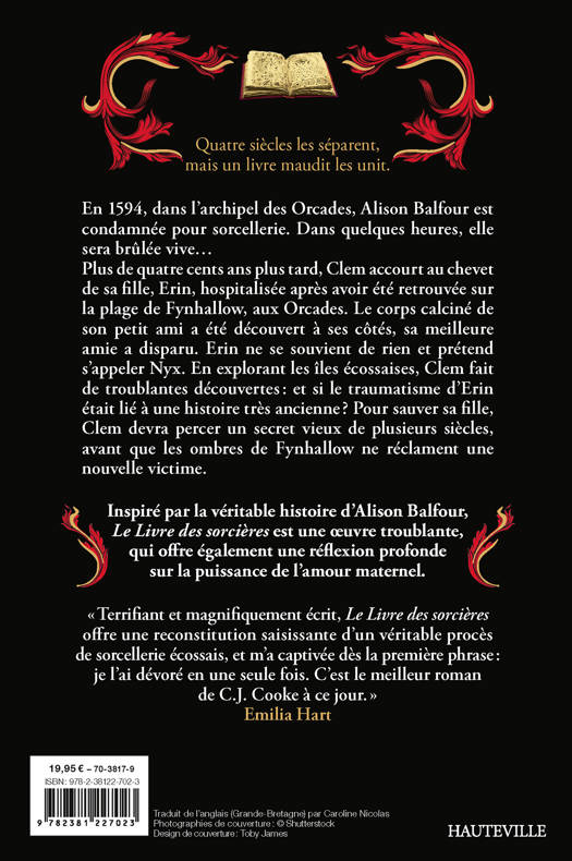 « Terrifiant et magnifiquement écrit, Le Livre des Sorcières offre une reconstitution saisissante d'un véritable procès de sorcellerie écossais, et m'a captivée dès la première phrase : je l'ai dévoré en une seule fois. C'est le meilleur roman de C.J. Cooke à ce jour. » Emilia Hart