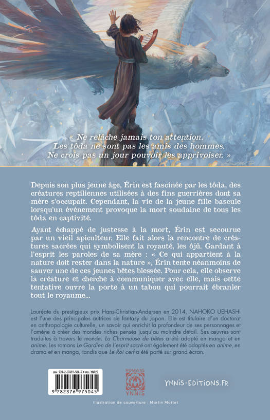 Lauréate du prestigieux prix Hans-Christian-Andersen en 2014, NAHOKO UEHASHI est l’une des principales autrices de fantasy du Japon. Elle est titulaire d’un doctorat en anthropologie culturelle, un savoir qui enrichit la profondeur de ses personnages et l’amène à créer des mondes riches pensés jusqu’au moindre détail. Ses œuvres sont traduites à travers le monde. La Charmeuse de bêtes a été adapté en manga et en anime. Les romans Le Gardien de l’esprit sacré ont également été adaptés en anime, en drama et en manga, tandis que Le Roi cerf a été porté sur grand écran.