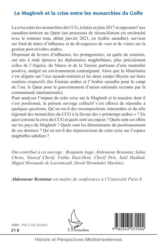 La crise entre les monarchies du Conseil de coopération du Golfe, éclatée en juin 2017 et opposant l’axe saoudien-émirien au Qatar survient sur fond de luttes d’influence et de divergences de vues et de visées sur la gestion post-révoltes arabes. Disposant de leviers d’influence, les protagonistes, en quête de soutiens, ont mis à rude épreuve les diplomaties maghrébines. Pour analyser l’impact de cette crise sur le Maghreb et la manière dont il s’est positionné, l'ouvrage s’efforce de répondre à quelques questions. Qu’en est-il des recompositions interarabes et du rôle régional des monarchies du CCG à la faveur des « printemps arabes » ? En quoi consiste la crise du CCG et quels sont ses enjeux ? Quels sont ses effets sur les pays du Maghreb ? Quels sont les déterminants du positionnement de ces derniers ? Qu’en est-il des répercussions de cette crise sur l’espace maghrébo-sahélien ?