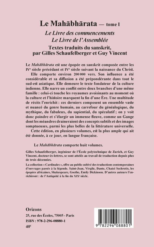 Le Mahabharata est une épopée en sanskrit composée entre le IVe siècle après J. C et le IVe siècle après J. C. Elle a eu une influence énorme sur les arts, connu une diffusion dans tout le sud-est asiatique et reste le texte fondateur de la culture indienne. Une multitude de récits l'enrichit au carrefour du généalogique, du mythique, du fabuleux, du sapientiel, du spéculatif. Cette édition, en plusieurs volumes, est la plus ample qui ait été donnée, à ce jour, en langue française.