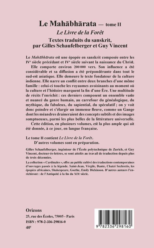 Le Mahabharata est une épopée en sanskrit composée entre le IVe siècle après J. C et le IVe siècle après J. C. Elle a eu une influence énorme sur les arts, connu une diffusion dans tout le sud-est asiatique et reste le texte fondateur de la culture indienne. Une multitude de récits l'enrichit au carrefour du généalogique, du mythique, du fabuleux, du sapientiel, du spéculatif. Cette édition, en plusieurs volumes, est la plus ample qui ait été donnée, à ce jour, en langue française.
